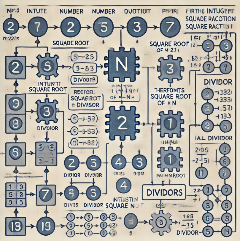 Para diseñar este algoritmo, comenzamos por identificar que, en lugar de verificar todos los números hasta N, podemos reducir la búsqueda de divisores hasta la raíz cuadrada de N. Esto se debe a que si N tiene un divisor mayor que su raíz cuadrada, el otro divisor será menor, por lo que no es necesario seguir buscando más allá de ese punto.